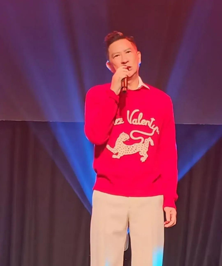 金像奖影帝张家辉最近受邀赶赴新加坡登台演唱,在晚宴上献唱张校友经典金曲《吻别》,大展歌喉。