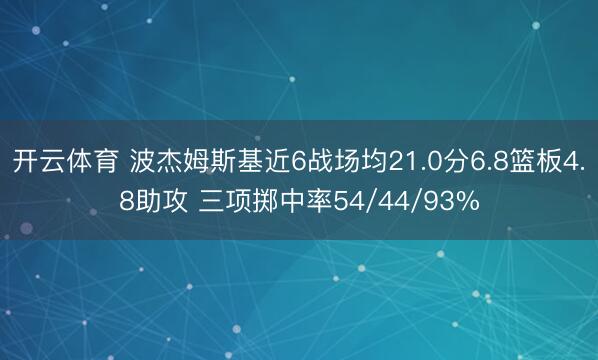 据统计开云体育,波杰姆斯基近6场比赛场均孝敬21.0分6.8篮板4.8助攻,三项掷中率54/44/93%。