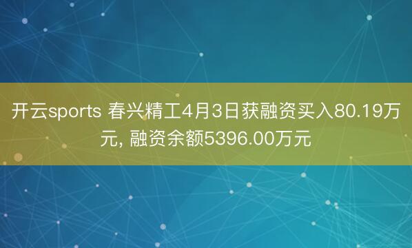 融资方面,春兴精工当日融资买入80.19万元。面前融资余额5396.00万元,占运动市值的1.49%,融资余额低于近一年10%分位水平,处于低位。