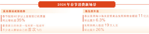 “新”年味儿,体当今消耗新场景的鲜美感。国潮范更浓,上海豫园灯会融入潮水IP,陕西、河南推出非遗市集专项手脚,开云体育官方网站受到游客接待。科技感更强,浙江年货大集上,智能眼镜、翻译耳机等新址品走俏。冰雪游、海岛游等多点升温,春运首周海口海关监管离岛免税购物金额超11亿元,免税购物东说念主数超19万东说念主次,环比差异擢升6.3%、26%。95亿东说念主次的流动,见证高品性、多元化的消耗新趋势,让年味儿更有烟火气、更具感染力。