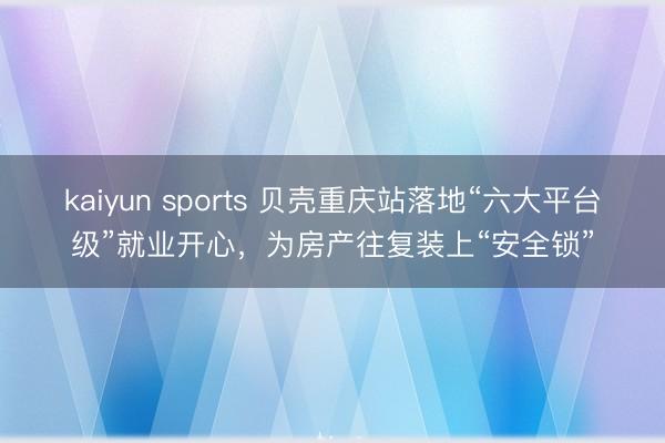 \n原标题:买租金款不安全?贝壳重庆站推六大平台级就业开心为往复装上“安全锁”kaiyun sports