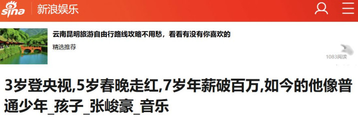 《3岁登央视,5岁春晚走红,7岁年薪破百万,如今的他像平常少年》(新浪文娱)、