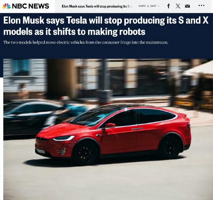 外媒曝马斯克文牍特斯拉将停产 Model S 和 Model X 这两款车。