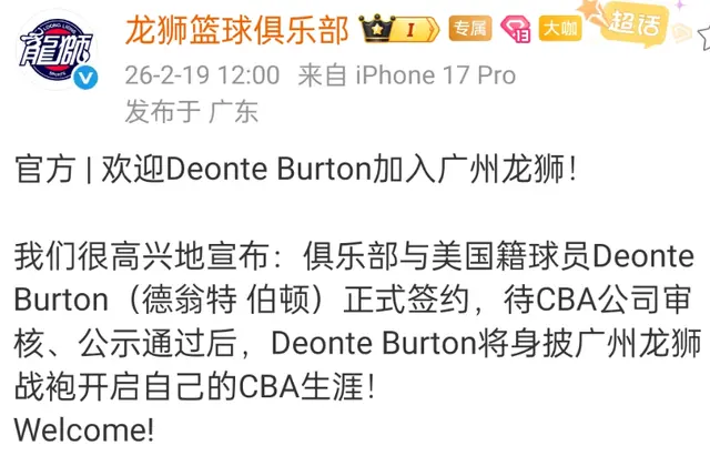 参预窗口期之后,更换外助成为CBA球队的责任要点,本赛季得益可以的广州男篮也裁掉了第一阶段的大外助托马斯,他们官方秘书和也曾在NBA打球的伯顿完成了签约,但广州龙狮应该还会补充外助,毕竟咫尺的三名外助齐是外线。