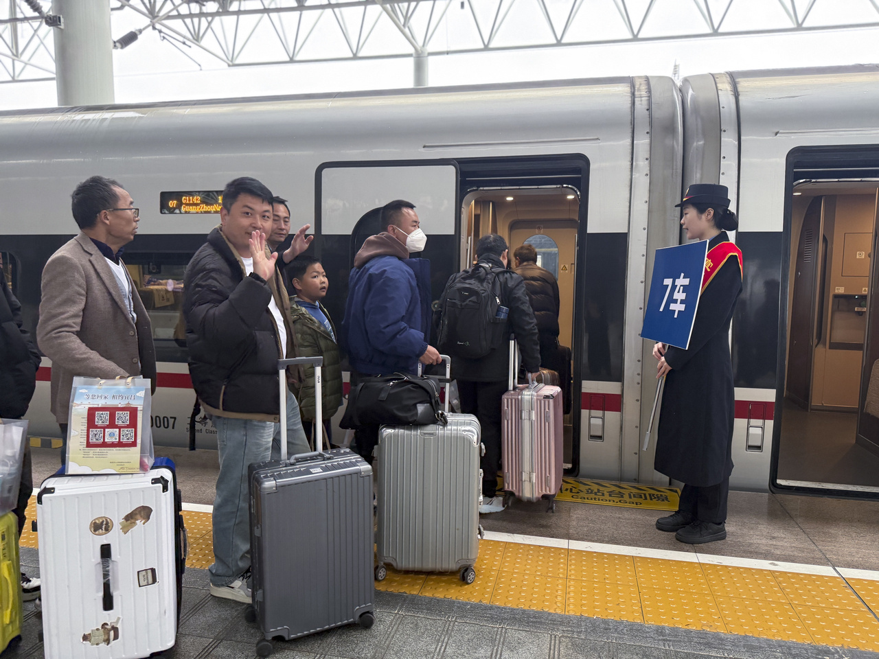 2月26日9时40分,来自宜昌10个县市区的500余名务工东谈主员,搭乘G1142次列车从宜昌东站启航,前去广州返岗复工。这是湖北宜昌本年开行的首趟“点对点”高铁返岗务工专列。