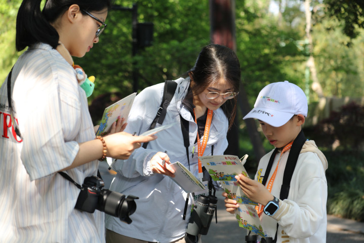 在2.5个小时的赛程中,各组参赛家庭需要在行进途中尽可能多地记载不雅察到的鸟种,并将鸟的称呼、所在位置等逐一填入比赛手册。与前两届不同的是,本届比赛还新增了两个互动程序:赛谈上赶快出没“深重NPC”,一朝偶遇便会触发各式赶快答题挑战;赛前分发的参赛包中,还配有一张不雅鸟任务卡,上头想象了各样的不雅察任务。整场比赛中,参赛家庭不仅要找鸟、认鸟,还得动脑答题、出手画画,让当然探索多了一层互动意思。这些新程序想象,出自西溪飞羽志愿者王晓晖:“但愿能让比赛更意思意思,让孩子们边玩边学。”