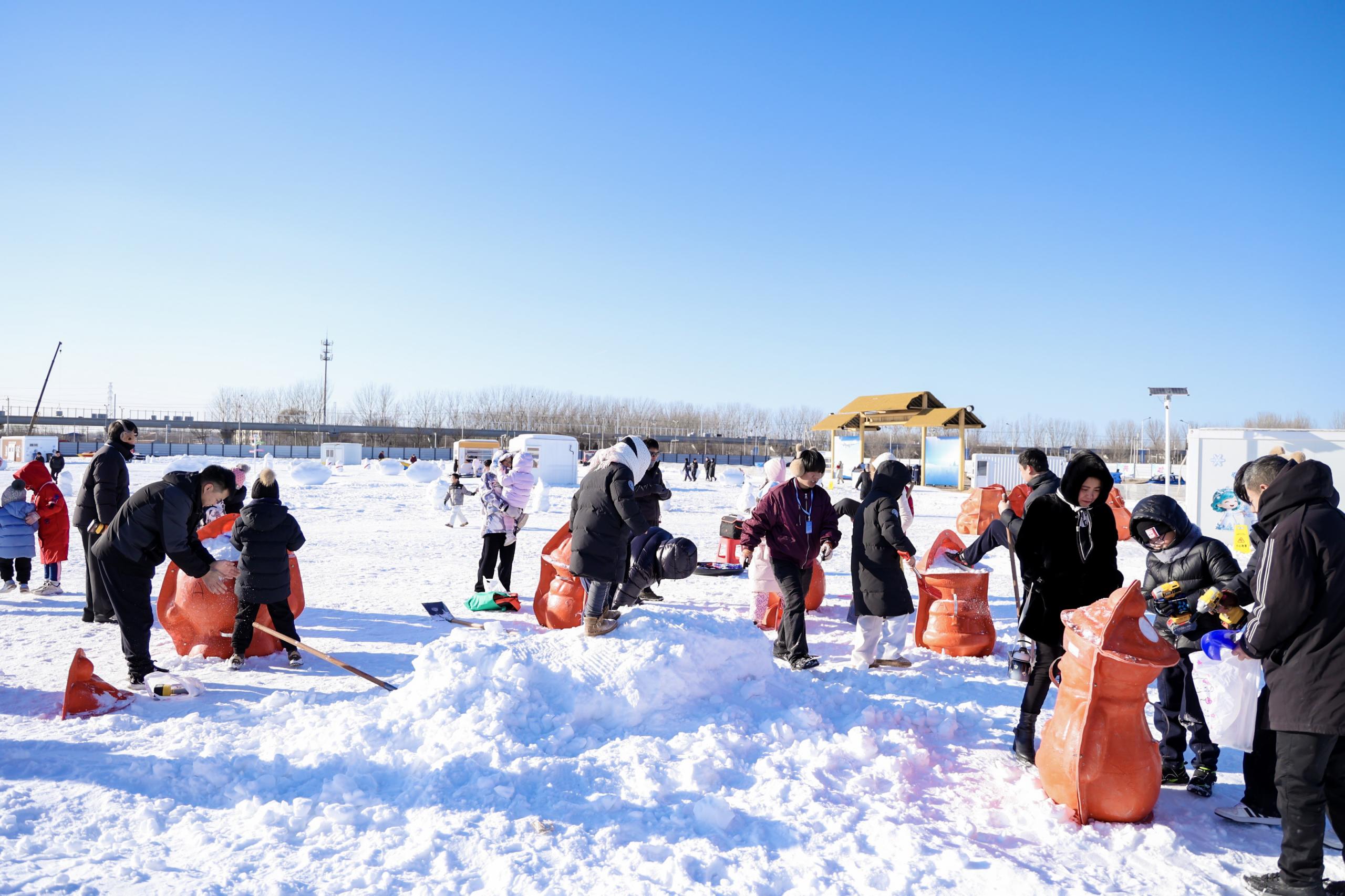 旅客在平谷桃源天璟雪花季堆雪东谈主