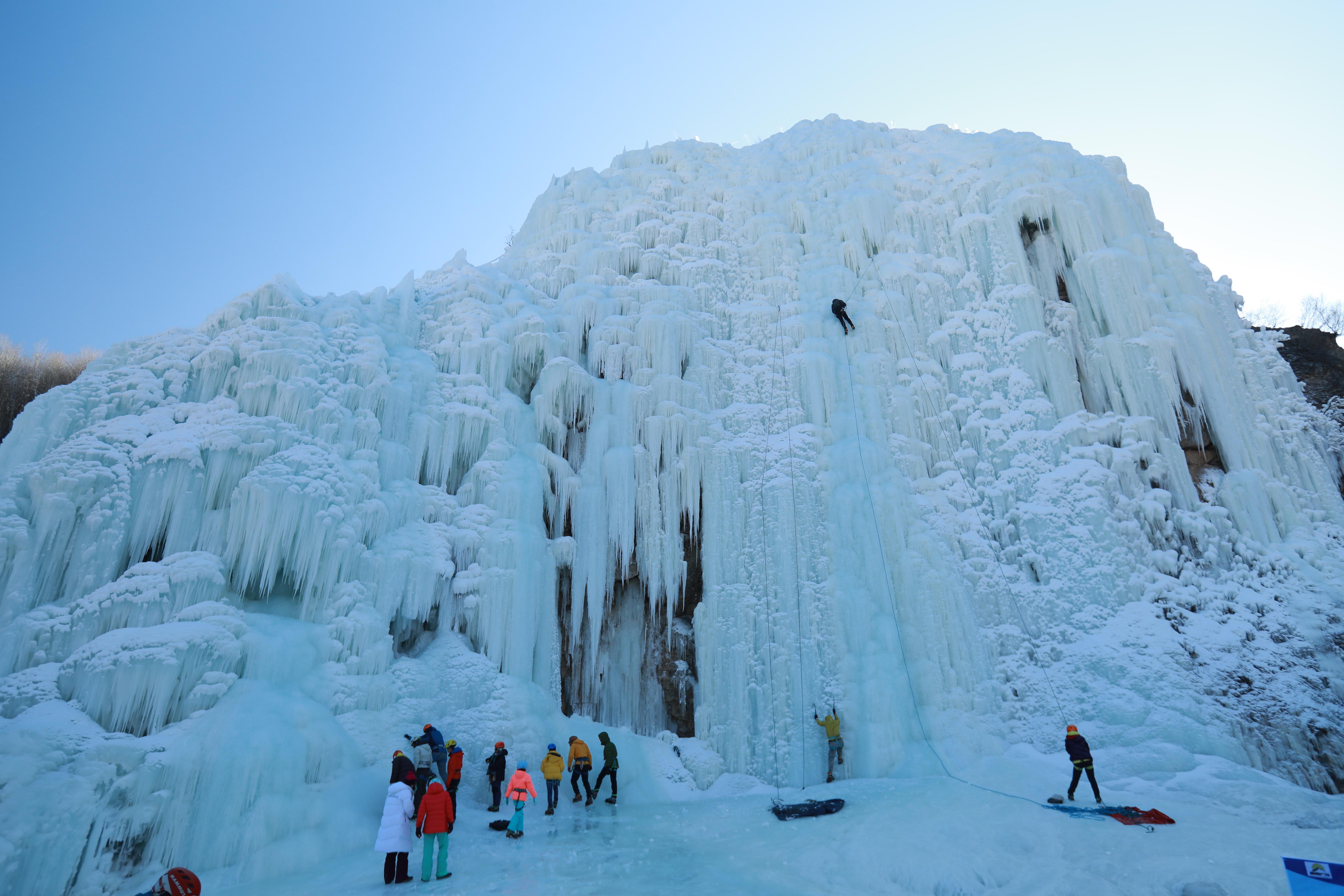 若是冰钓不够刺激,攀冰如何样?延庆玉渡山景区为您准备了专科的攀冰格式。基地领有多座自然冰瀑与东谈主工冰壁,包括高达55米的专科级冰壁与宽达80米的体验型冰壁,辞别专科老到、寰球体验与熏陶三大区域,并配备专科素养与完善安整体系,瞻望总计冰期“超长待机”,市民旅客可来体验攀冰课程、开展冬令营和团建等。