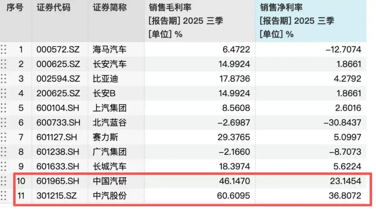 数据浮现,昨年三季度,中国汽研和中汽股份销售净利率离别为23.1%和36.8%。