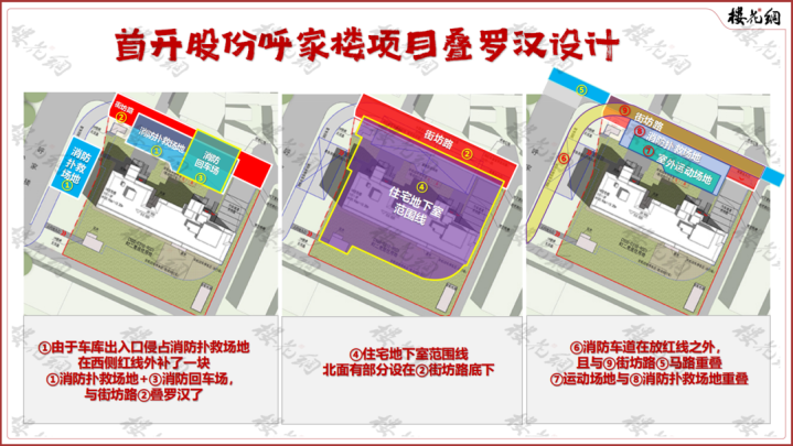 1、北面的街坊路,至少和消防扑救所在、消防回车场、消防车谈、室外动作所在、住宅地下室限度线,齐存在调换,或错乱;