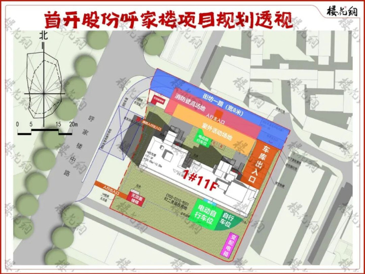 另外,在呼家楼形势2700平米住宅占地里,还有长约50米、宽8米的街坊路。