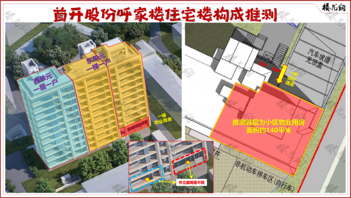 花姐推测,东端户首层可能是小区的物业用房或会所,约140平米。