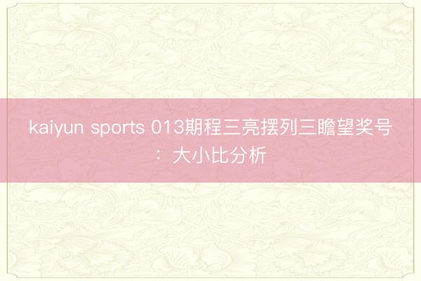 大小比分析:第013期历史同时奖号中,亚搏app注册登录号码大小比开出31:35,小 号证据活跃,其中全小组合开出4次,两大一小组合开出5次,两小一大组合开出9次,全大组合开出4次,开云体育官方网站本期珍爱小 号走热,看好大小比1:2。