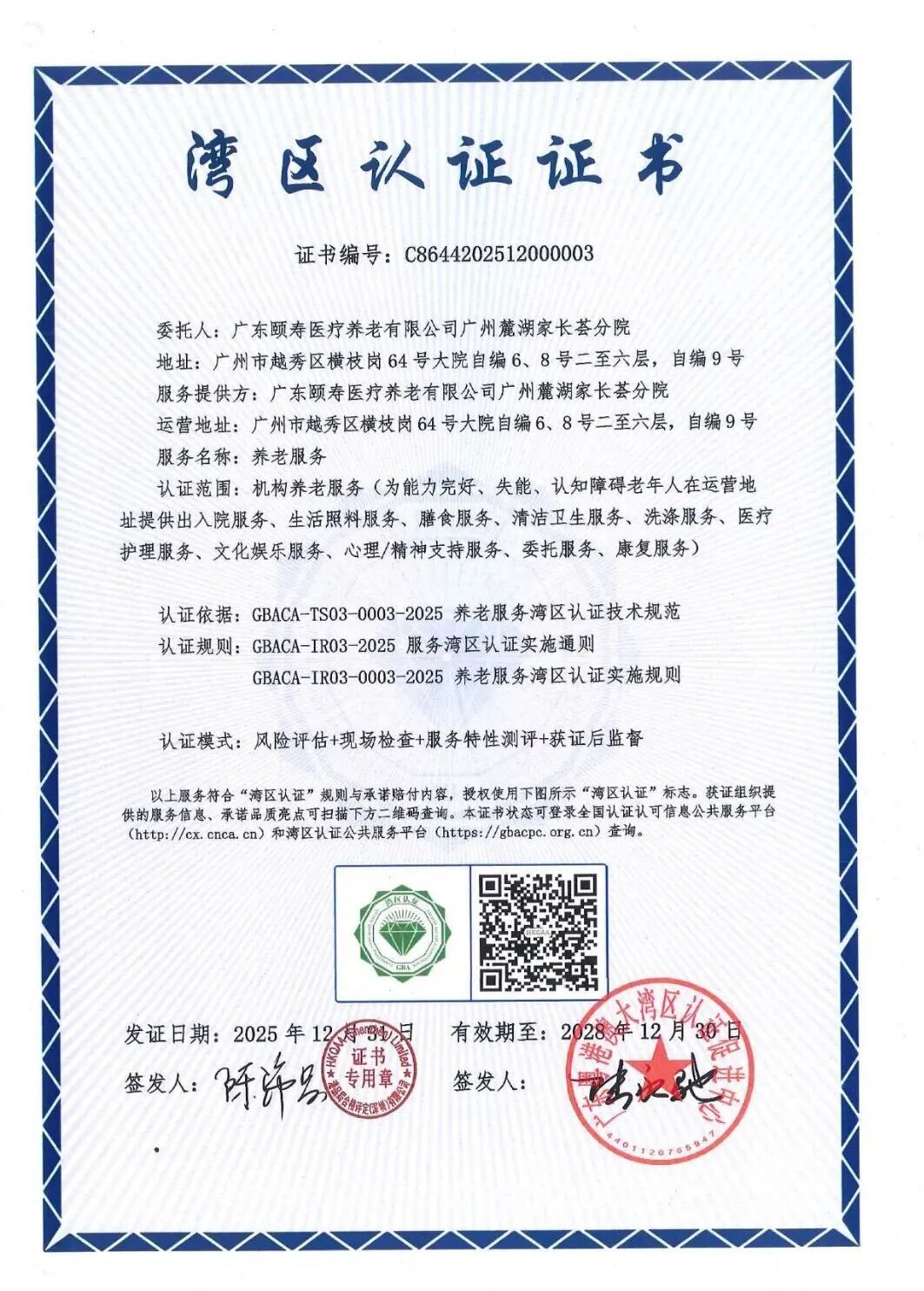 除了惩处吃饭等基本需求,越秀还在延续探索,何如让父老享受更高品性的养老管事。2026年1月,广州市管事界限的首张“湾区认证”文凭花落越秀,颐寿麓湖家长荟获此盛誉。这是“高端品性”赋能银发经济的立异施行。“湾区认证”引入质料信息公示、承诺赔付等严苛轨制,麓湖家长荟对标粤港澳三地表率,在照看团队、用药不竭、措施开辟等方面全面优化,让父老“扫码即知、定心委用”。